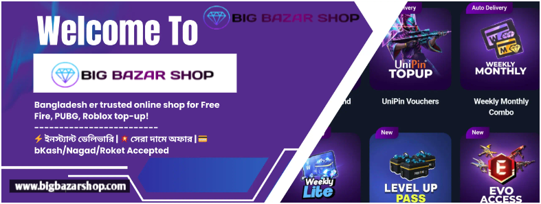 Notice: BIG BAZAR SHOP ওয়েবসাইটে রয়েছে দিনরাত 24 ঘন্টা অটো টপ-আপ সার্ভিস যে কোন সমস্যায় আমাদের সাথে যোগাযোগ করুন +8801837489447